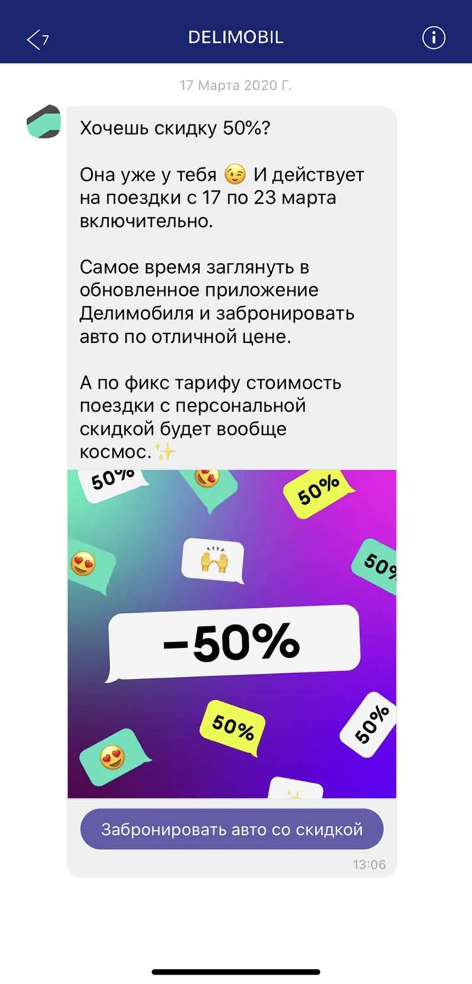 Акционные сообщения рассказывают о скидках, акциях и персональных предложениях. Их задача — убедить вас сделать новую покупку.