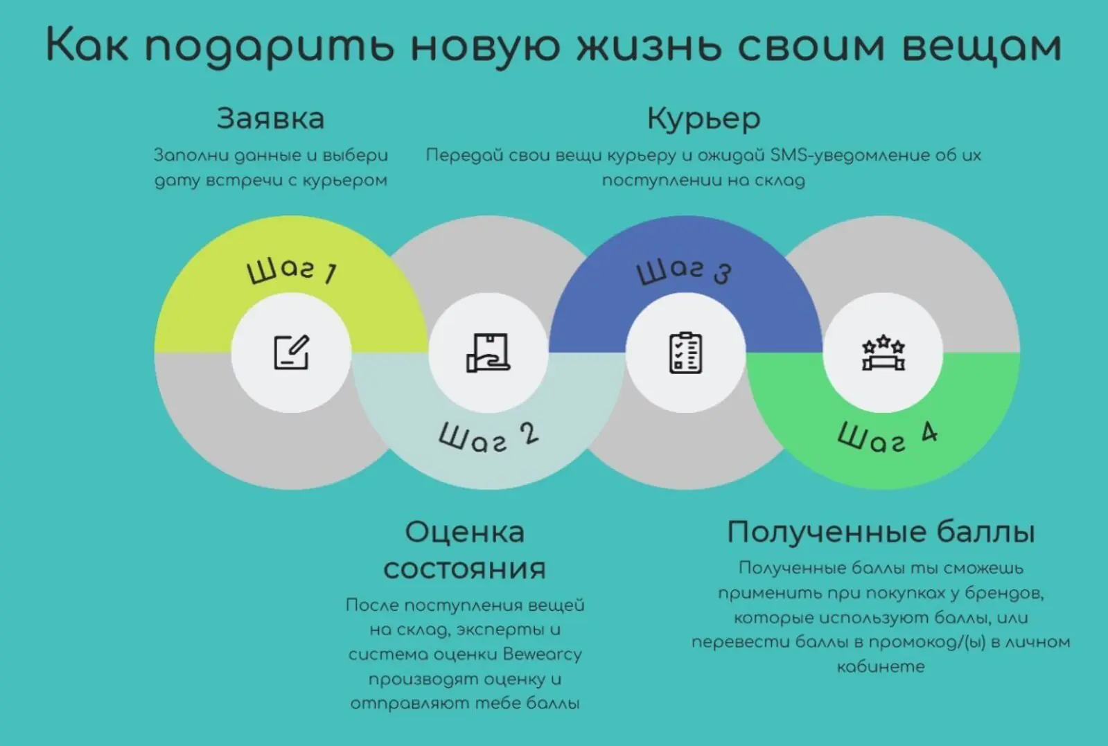 Bewearcy — это сервис, который позволяет сдавать старую одежду в хорошем состоянии в обмен на промокод или баллы, которые можно использовать у любого подключенного к сервису партнера.