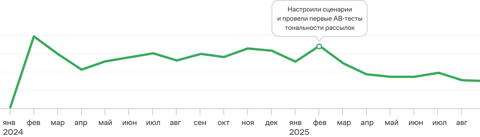 Мы изменили тон коммуникаций. В письмах стало меньше эмоционального давления и срочности, больше историй выздоровления и надежды. Параллельно запустили автоматические цепочки и начали