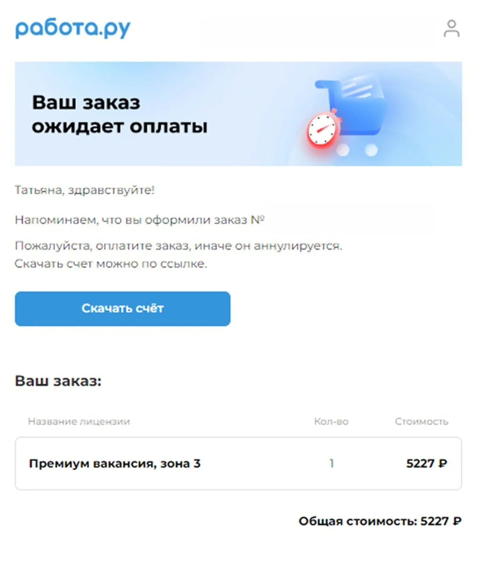 Если клиент готов оплатить тариф, менеджер отправляет счет. Но некоторые выбирают тариф самостоятельно. Если не завершают оплату, им приходит письмо-напоминание.