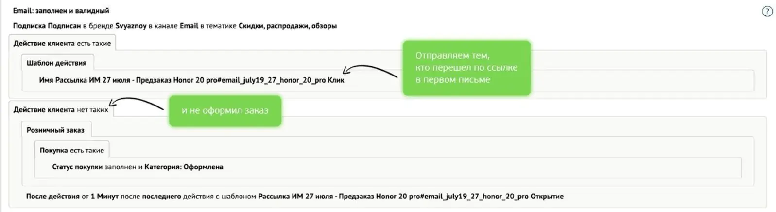 Этап первый: email-маркетолог отправил массовую рассылку о предзаказе Honor 20 Pro всем клиентам, которые проявляли активность на сайте, но не совершили на момент отправки ни одной покупки. Таких людей в базе было более 900 тысяч.