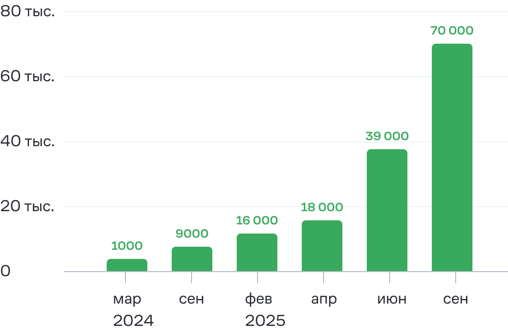 Первые 18 тысяч подписчиков Telegram-бота набрали благодаря рассылкам и постам в соцсетях бренда. А в мае 2025 года, когда запустили регистрацию в программе лояльности через бот, его аудитория удвоилась всего за месяц. К сентябрю было 70 тысяч подписчиков.
