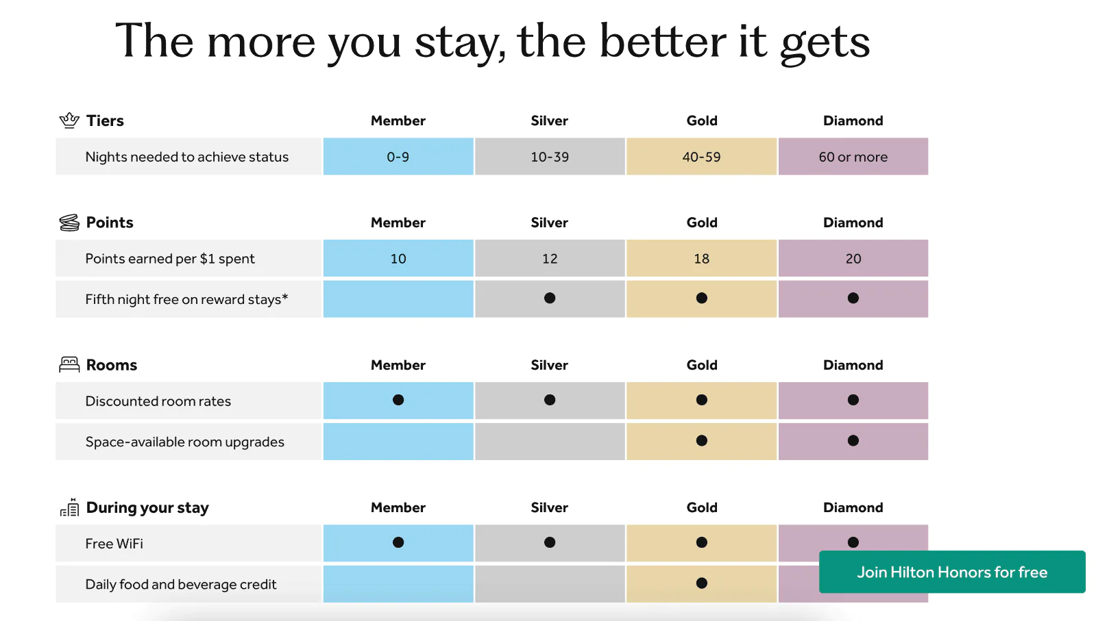 скидки на бронирования, бесплатные ночи за баллы, ускоренный интернет, возможность раннего заезда и позднего выезда, бесплатные апгрейды номера.