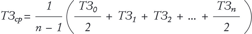 ТЗо, ТЗ1, … ТЗn — товарные запасы на соответствующие даты, n — количество дат замера остатков товара.