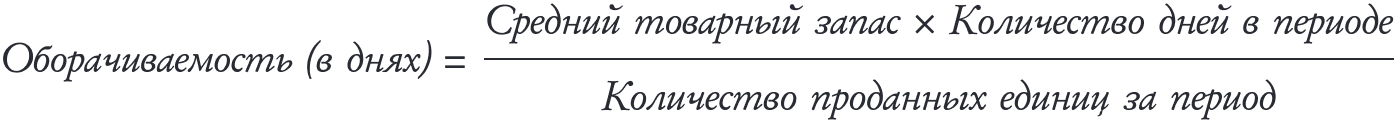 Оборачиваемость товара показывает срок, за который продадут все запасы на складе. Допустим, магазин закупает партию платьев и продает их за три месяца. Этот срок и есть оборачиваемость платьев.