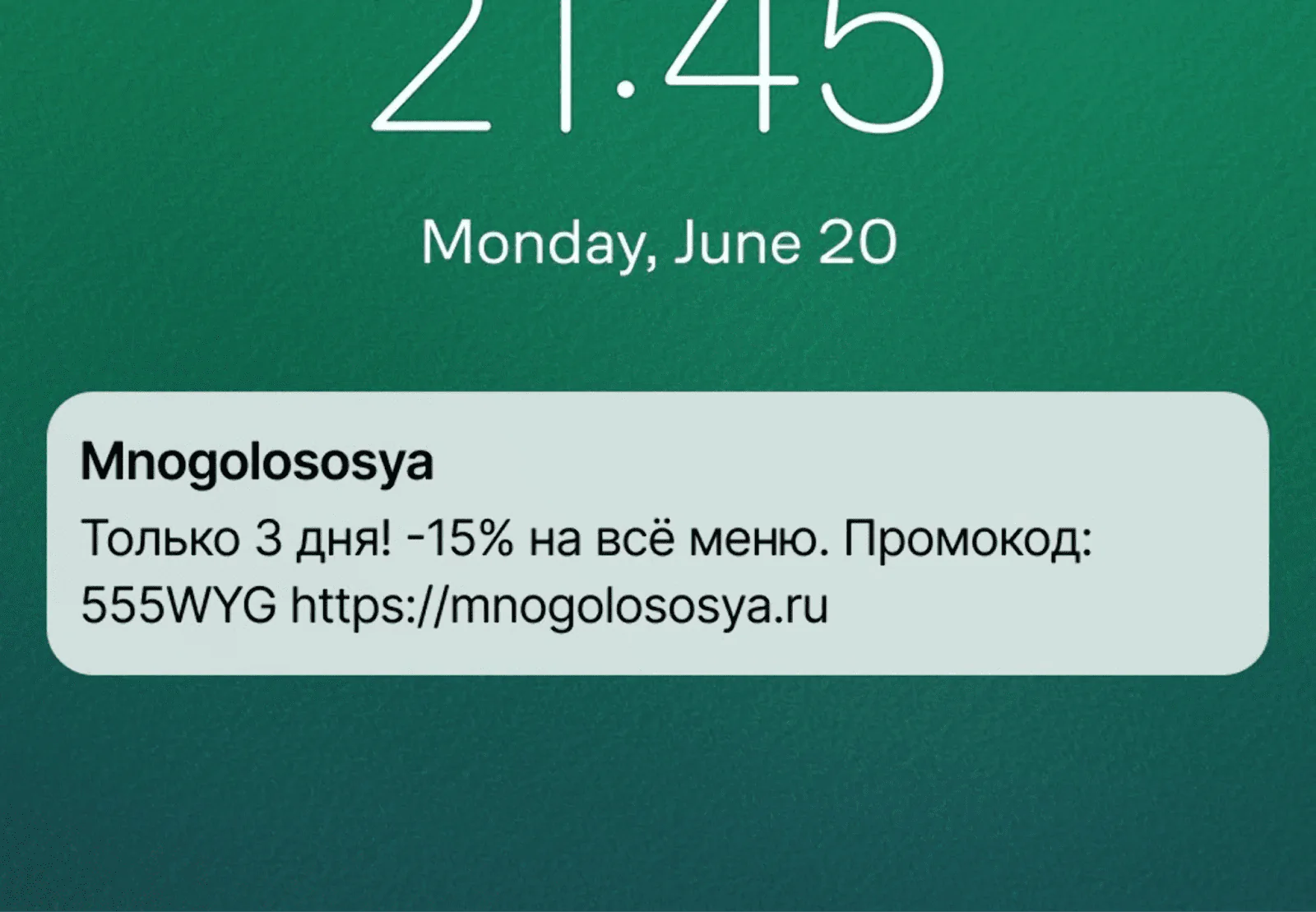 - короткие рекламные сообщения с промокодом или ссылкой.