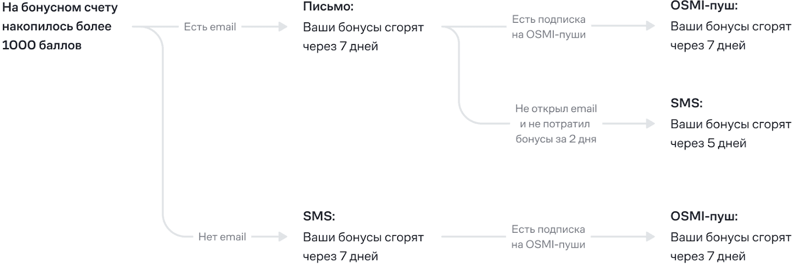 Подходит для триггеров, напоминаний, персонализированных предложений.