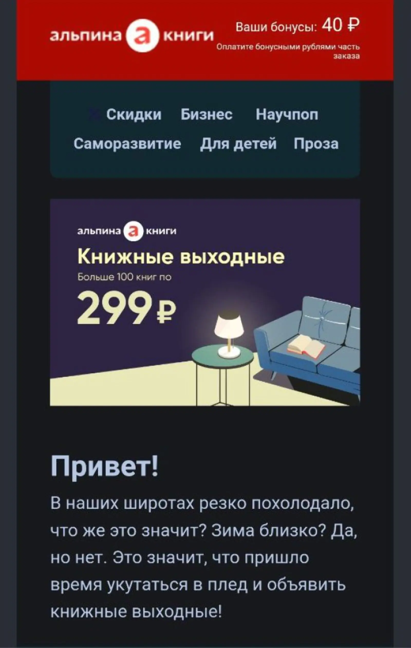 Письмо сверстано картинками, поэтому его цвета не изменились в темной теме