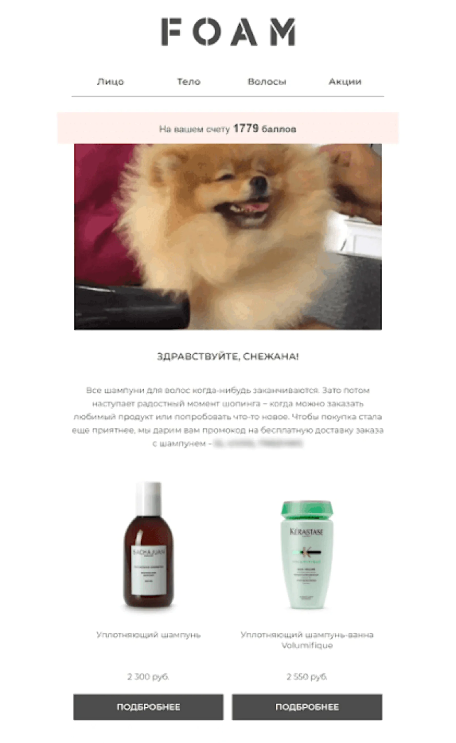 После покупкишампуня система рассчитывает расход на 60 дней и за неделю до окончания срока отправляет предложение о повторной покупке
