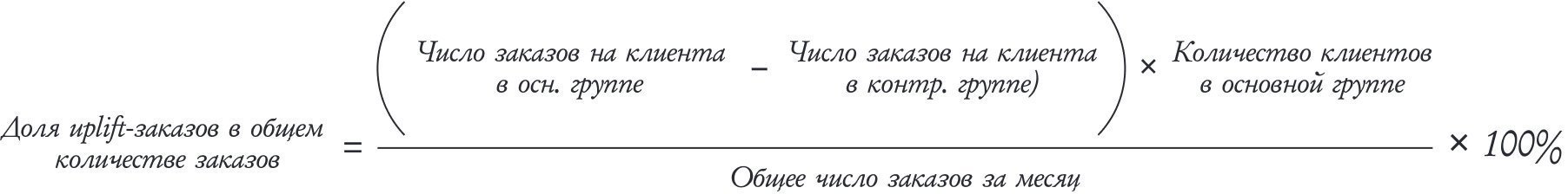Долю uplift-заказов рассчитывают по формуле: