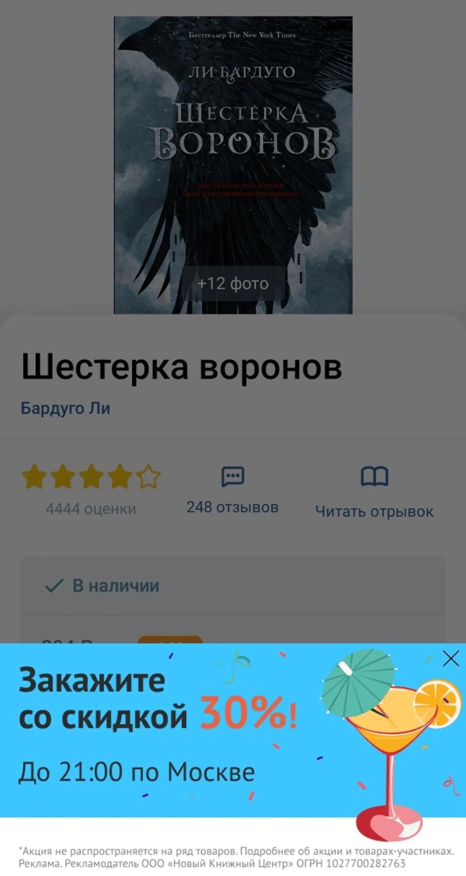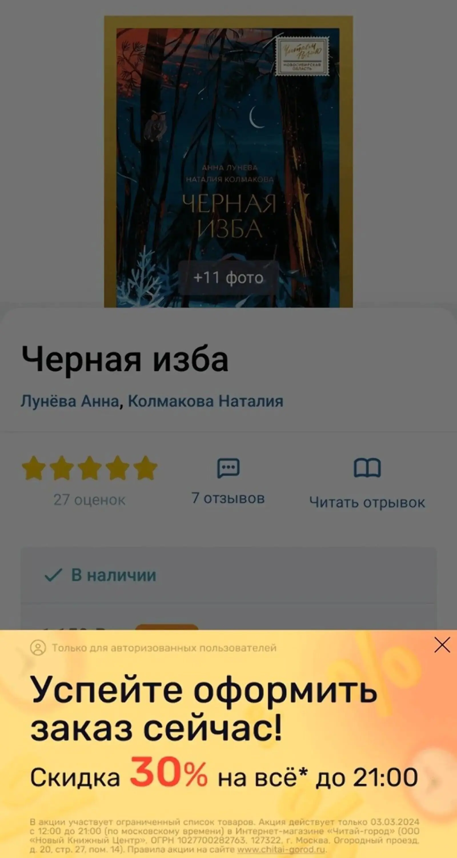 Примеры In-App о краткосрочной акции в книжном магазине «Читай-город»