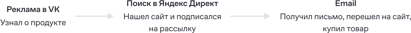Разберем на примере. Человек увидел рекламу в соцсети, потом зашел на сайт