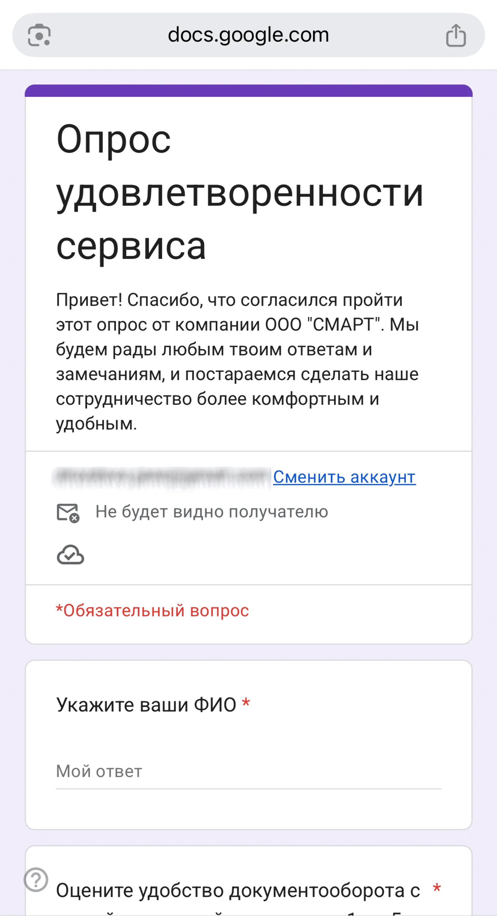 Сервис для электронного документооборота «СМАРТ» использует Google Forms в рассылке опроса для сбора обратной связи от клиентов. В форму добавлены как открытые, так и закрытые вопросы