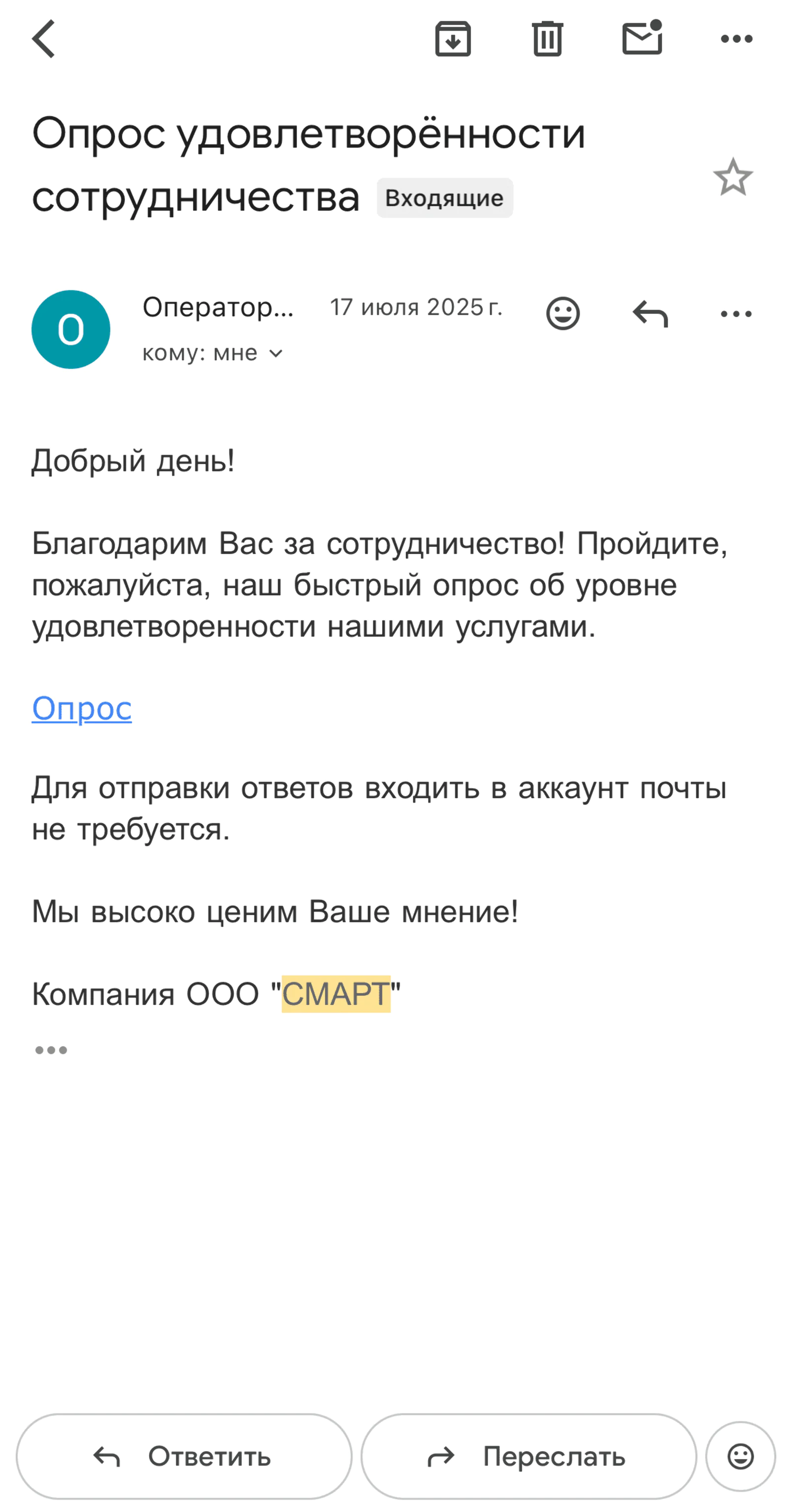 В ответ на низкие оценки приходит письмо от поддержки с извинениями и компенсацией или предложением разобраться в ситуации. В ответ на высокие оценки — письмо с просьбой оставить публичный отзыв на конкретной площадке