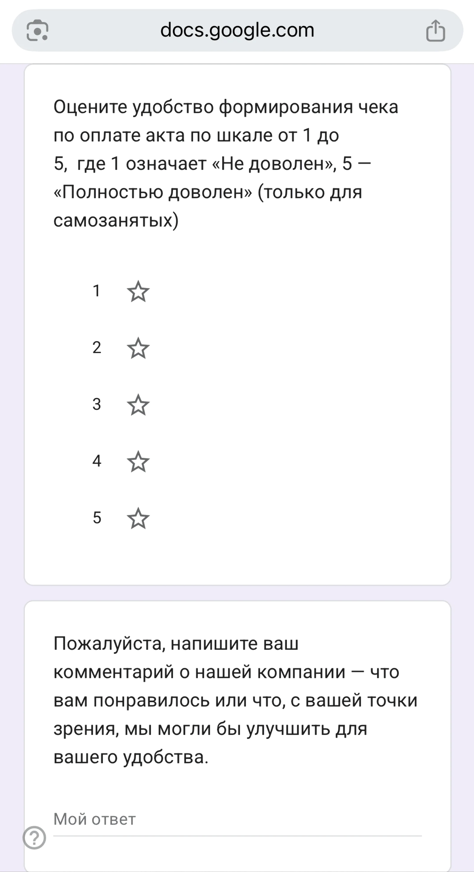 После выбора оценки открывается опрос с подробными вопросами