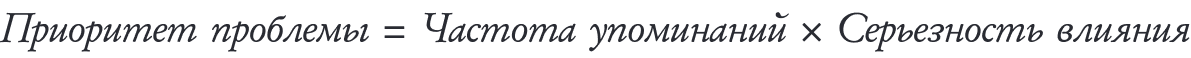 Учитывает частоту повторения конкретных ключевых слов и их важность для клиента. Приоритет проблемы определяется по формуле: