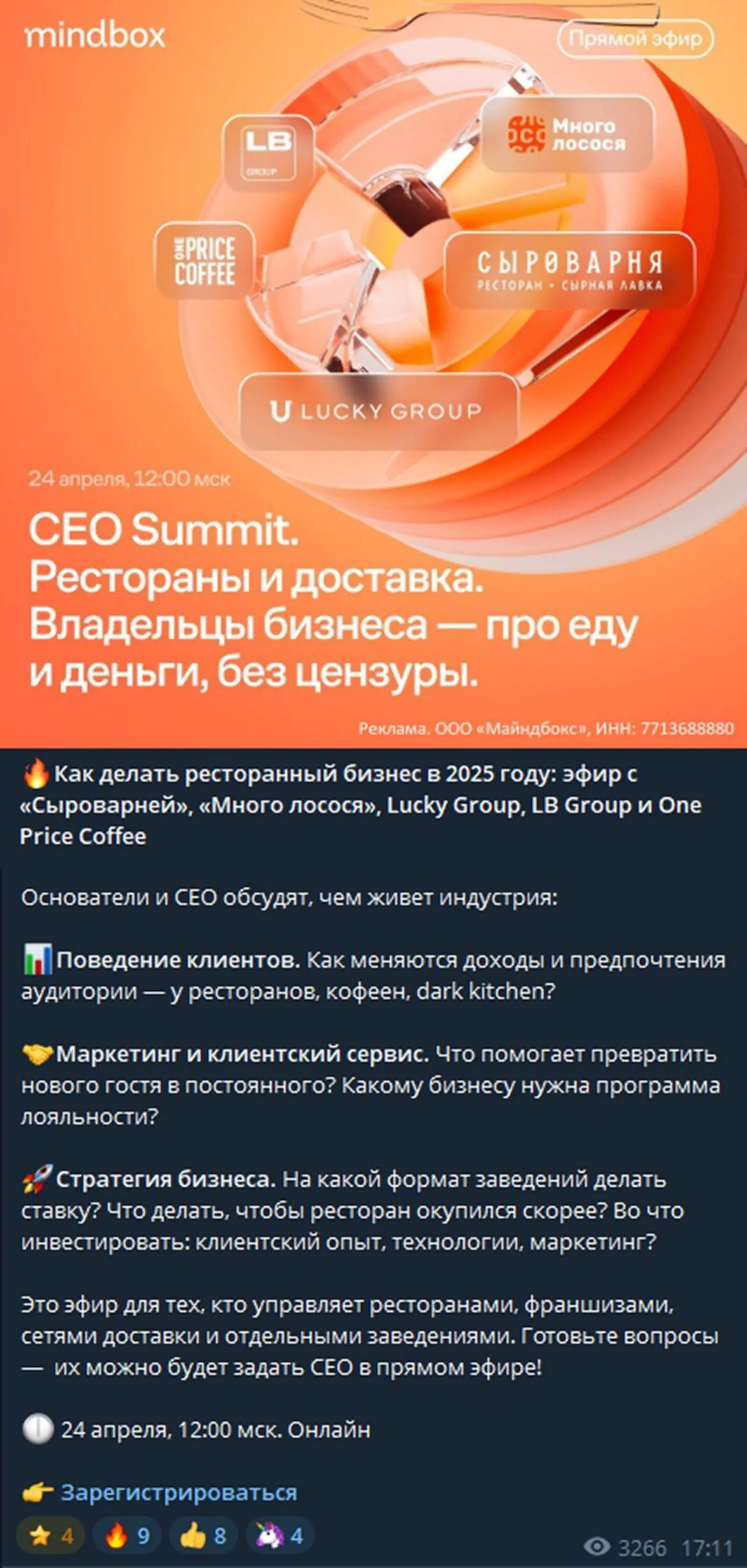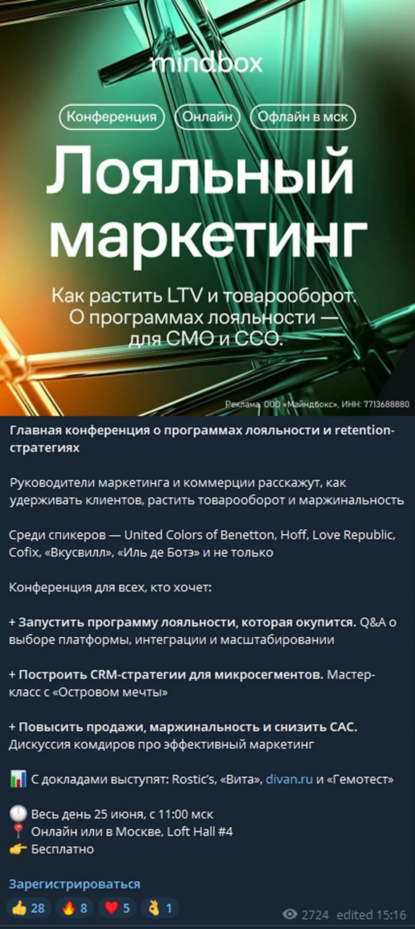 Рекламные посевы Mindbox в канале «Стратегия и маркетинг»