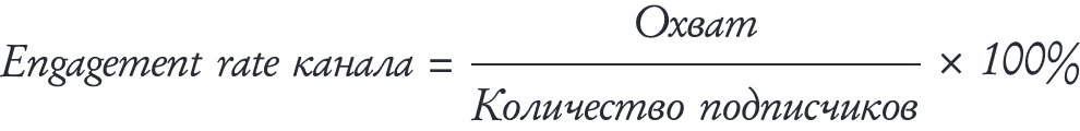 Например, если у поста 10 тысяч просмотров, а в канале 20 тысяч подписчиков, engagement rate = 10000 / 20000 × 100% = 50%.