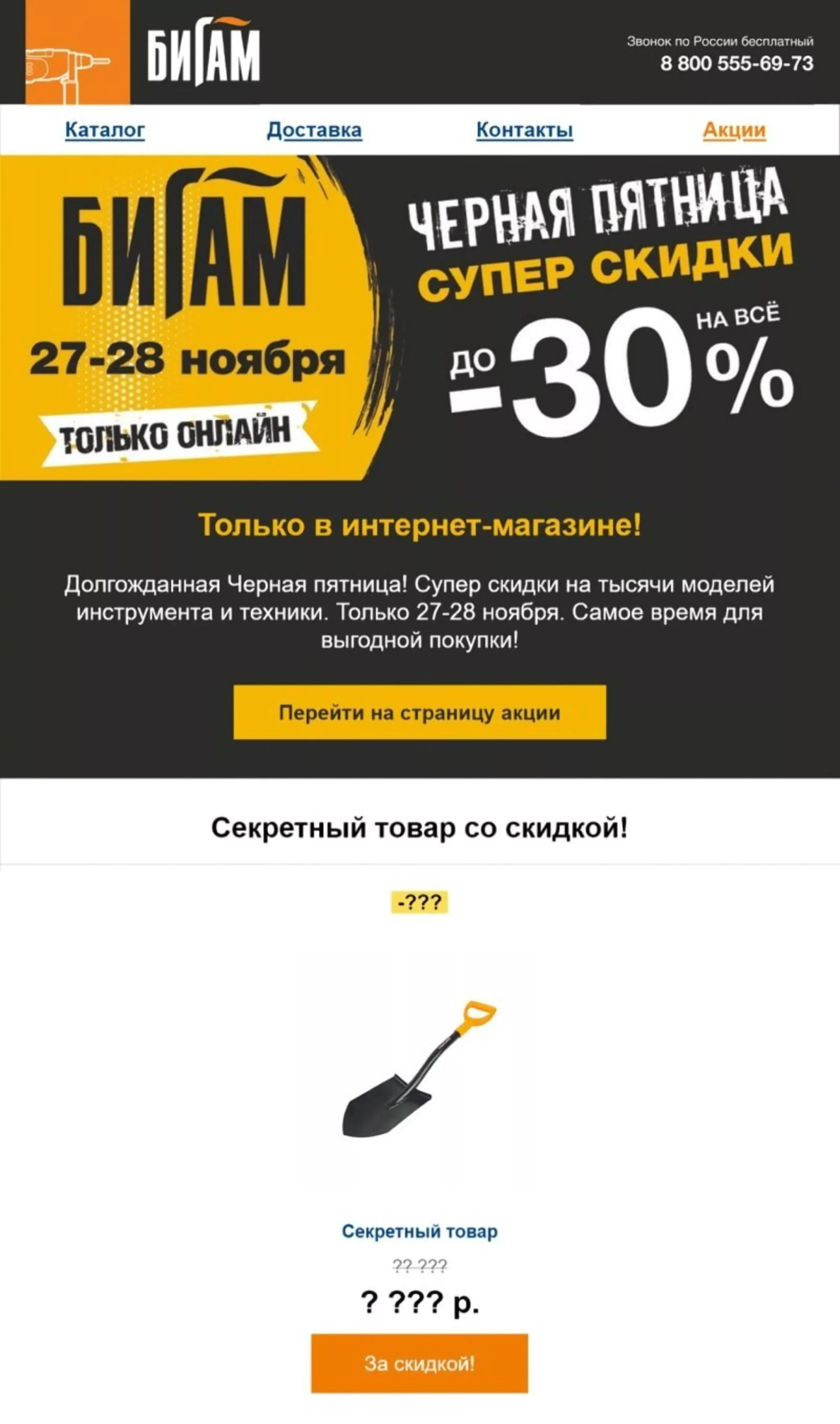 Письмо от «Бигам», в котором клиенту предлагали секретный товар со скидкой