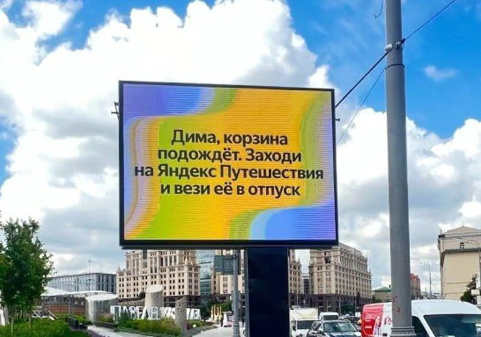 В июне 2024 года маркетплейс Wildberries запустил наружную рекламу со слоганом «Дима, оплати ей корзину на WB». Кампания быстро стала инфоповодом: «Сбер» предложил взять кредит, «чтобы хватило и на корзину, и на отпуск», МТС — слушать «МТС Музыку», ВТБ — открыть накопительный счет, а «VK знакомства» ответили слоганом «Диму сначала нужно встретить».