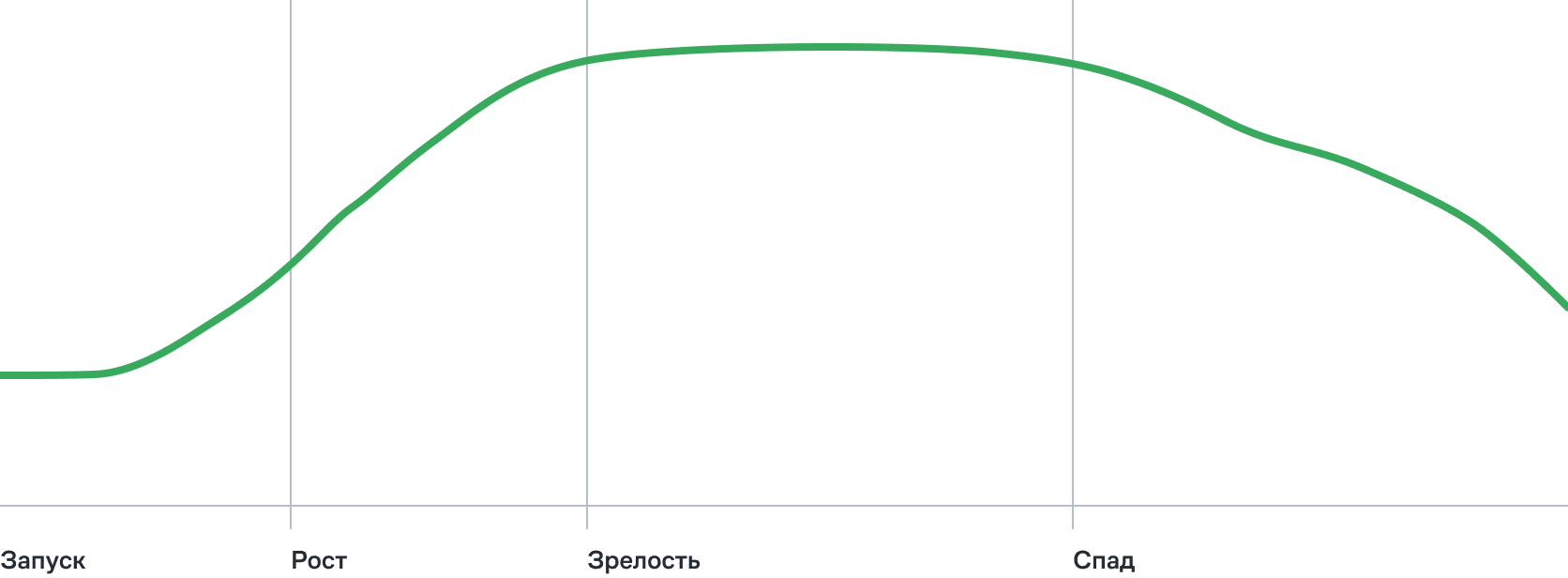 Модель жизненного цикла продукта — это этапы его развития, на каждом из которых бизнес решает разные задачи. К примеру, на стадии запуска важно инвестировать в привлечение новых клиентов и тестирование разных маркетинговых каналов, а на стадии роста — совершенствовать и автоматизировать внутренние процессы.