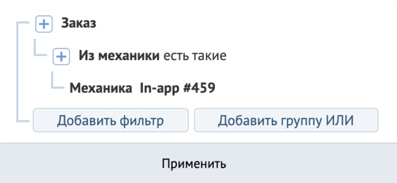 Раньше можно было оценить эффективность In-App только по click rate, с помощью собственной аналитики или АB-тестов сегментов. Теперь отчет «Доходность механик» показывает число заказов, атрибутированных к каждому In-App за нужный период, и выручку от этих заказов в динамике: