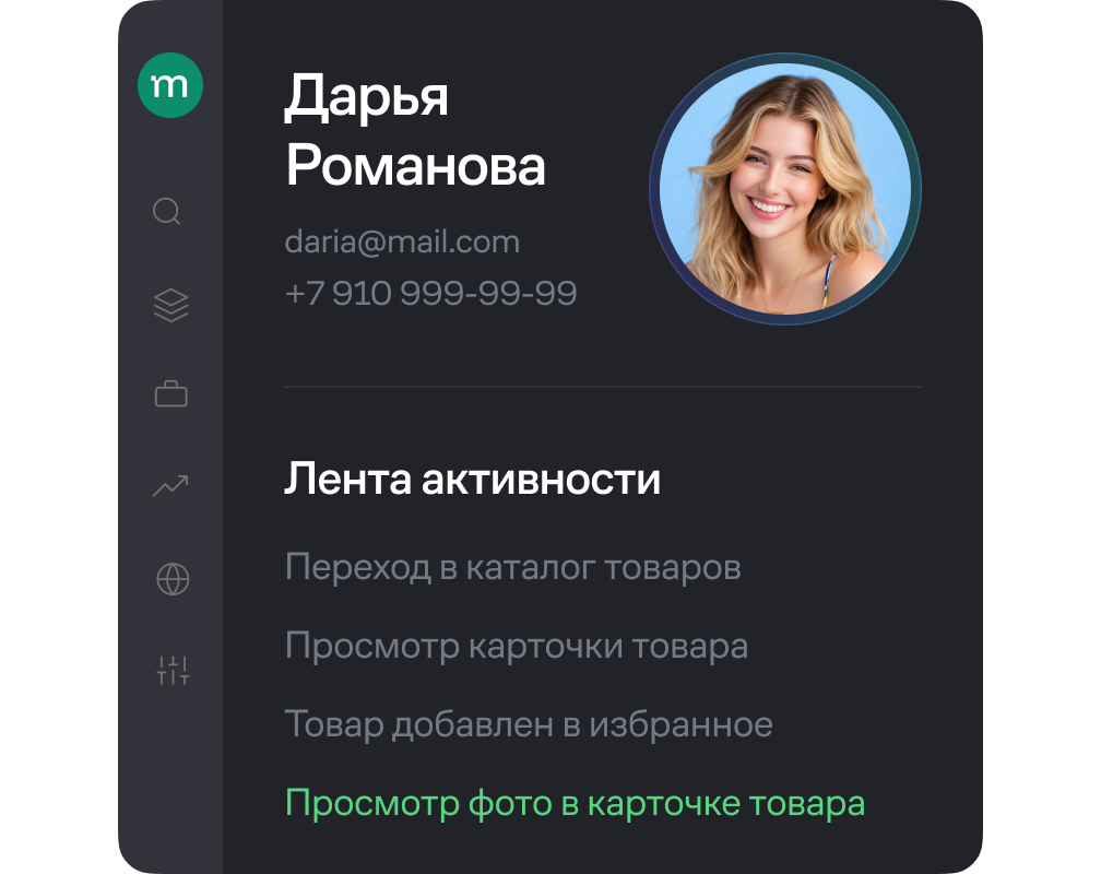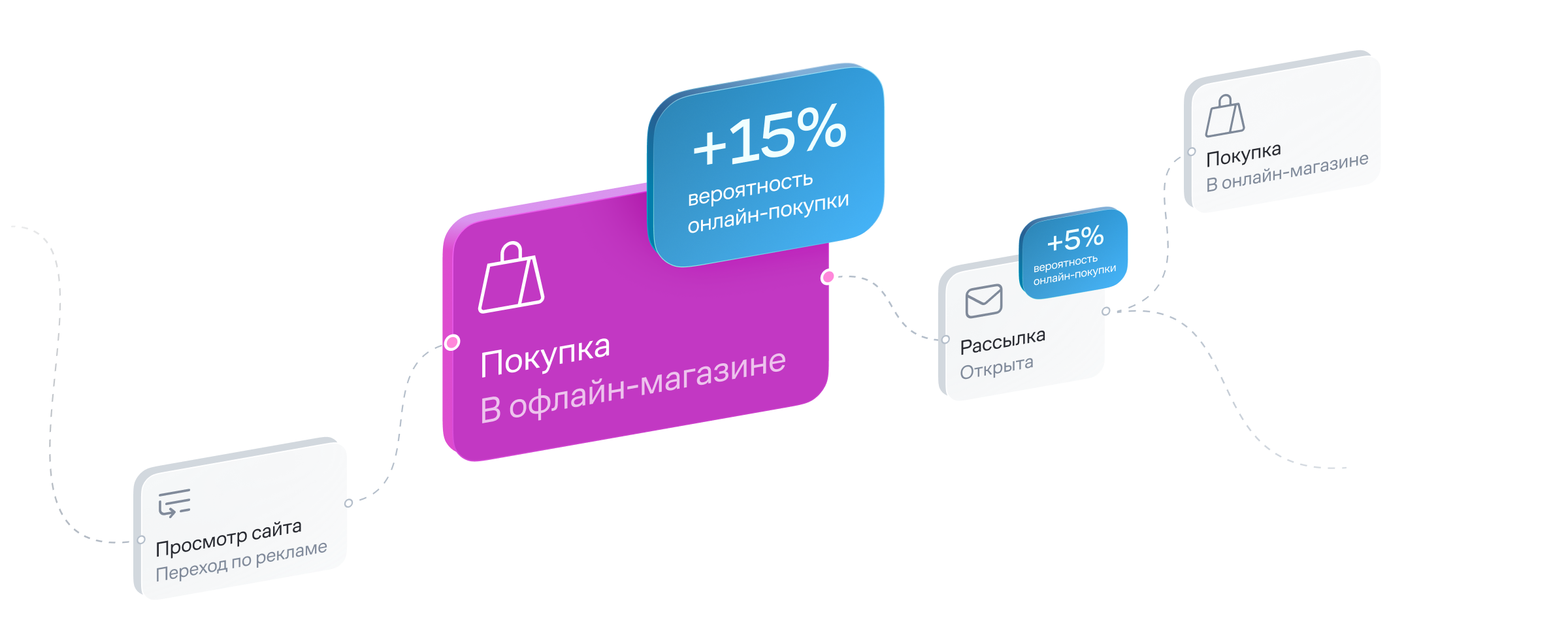 Собирайте данные о клиенте из онлайна и офлайна в единый профиль в CPD, чтобы точнее определять вероятность покупки.